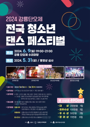 (강원=NSP통신) 조이호 기자 = 강원 강릉시(시장 김홍규)가 오는 9일 오후 7시 강릉단오제 수리마당에서 ‘2024 강릉단오제 전국 청소년 댄스페스티벌’을 개최한다.