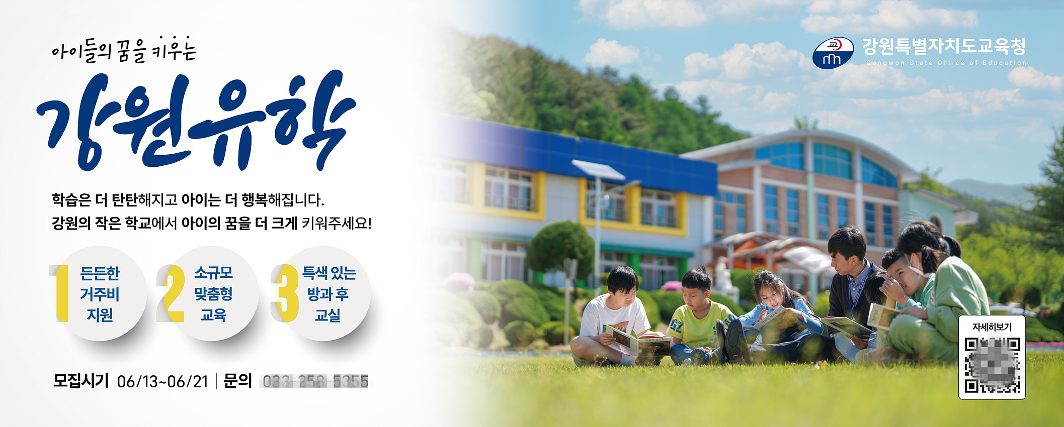 (강원=NSP통신) 조이호 기자 = 강원특별자치도교육청(교육감 신경호)이 오는 13일부터 21일까지 9일간 2024년 2학기 강원특별자치도교육청 농어촌유학생을 모집한다.