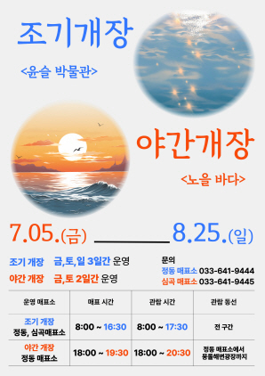 (강원=NSP통신) 조이호 기자 = 강원 강릉시(시장 김홍규) 강릉관광개발공사(사장 강희문)가 정동·심곡 바다부채길의 운영 시간을 확대해 조기개장 및 야간개장을 실시한다.