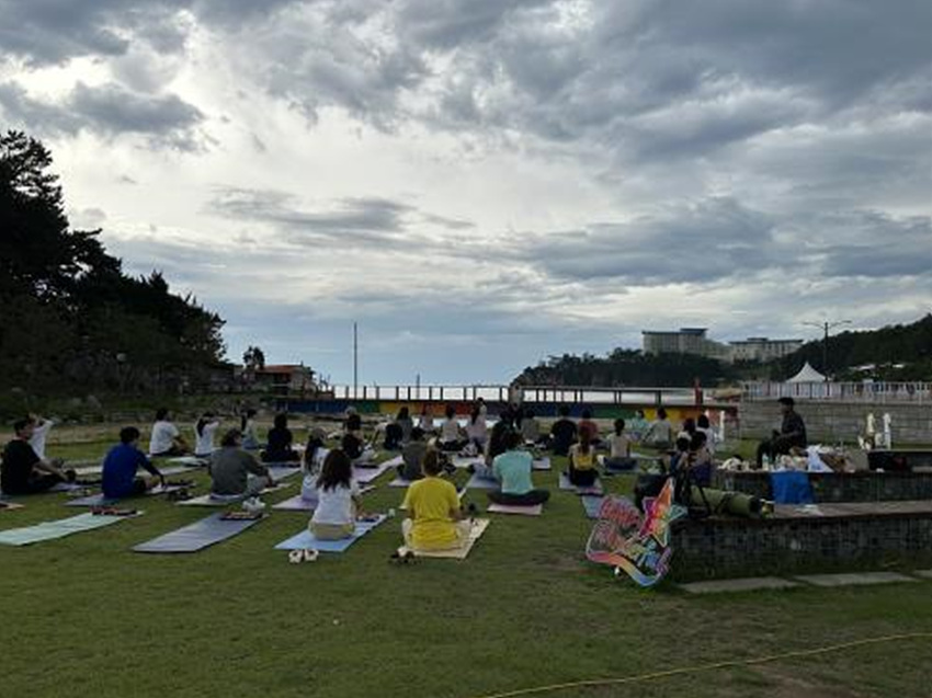 지난 7일 추암해변 잔디광장에서는 강원도관광재단과 함께 웰니스(요가와 명상)를 연계한 일출요가를 비롯해 뇌파 스트레스검사, 프로필 사진 촬영 등을 진행해 참가자들의 몸과 마음을 치유하는 시간이 됐다.