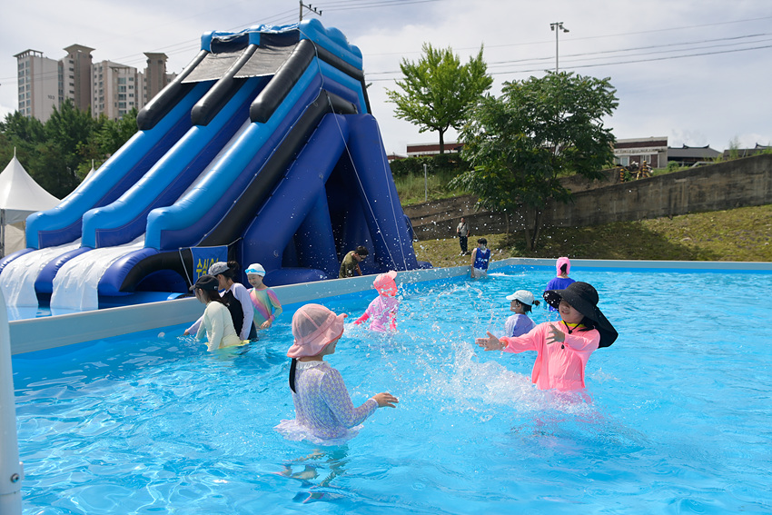 하천 내 처음 설치되는 이번 물놀이장은 25일부터 8월 15일까지 운영되며 워터드롭, 워터터널, 조합놀이대 등으로 구성되며 약 200여 명을 수용할 수 있는 규모로 조성됐다.