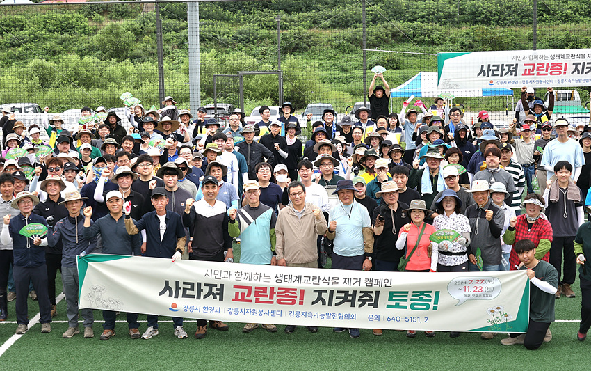 (강원=NSP통신) 조이호 기자 = 강원 강릉시(시장 김홍규)가 27일 농산물새벽시장에서 시민과 함께하는 생태계교란식물 제거 캠페인을 실시했다.