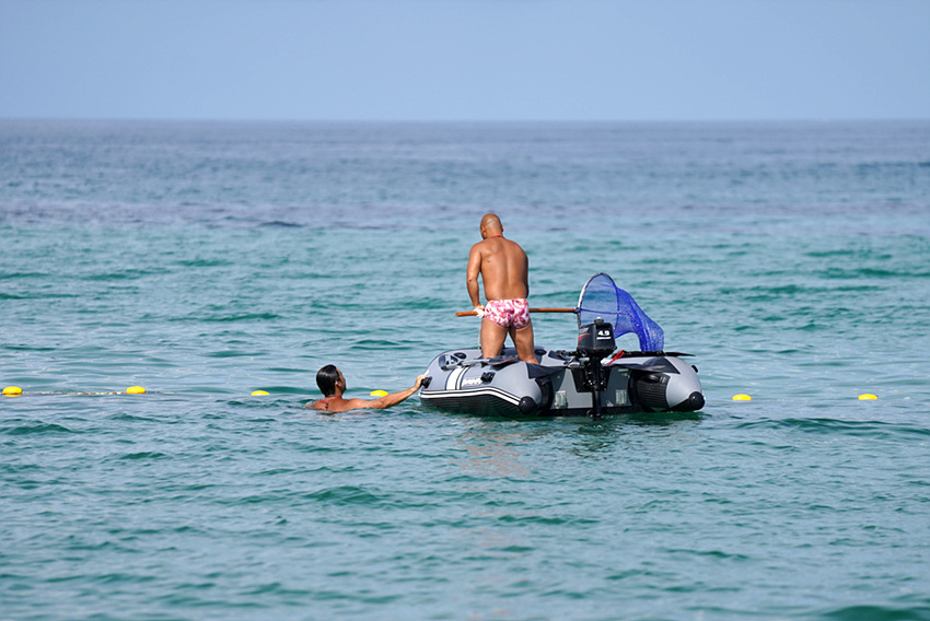 또한 수상안전요원들이 모터보트 등의 장비를 이용해 수시로 해파리 접근 여부를 감시하며 그물망 바깥쪽에 해파리가 접근하는 경우, 전용 수거 장비 등을 이용해 채집 후 해변으로 꺼내 처리하고 있다.