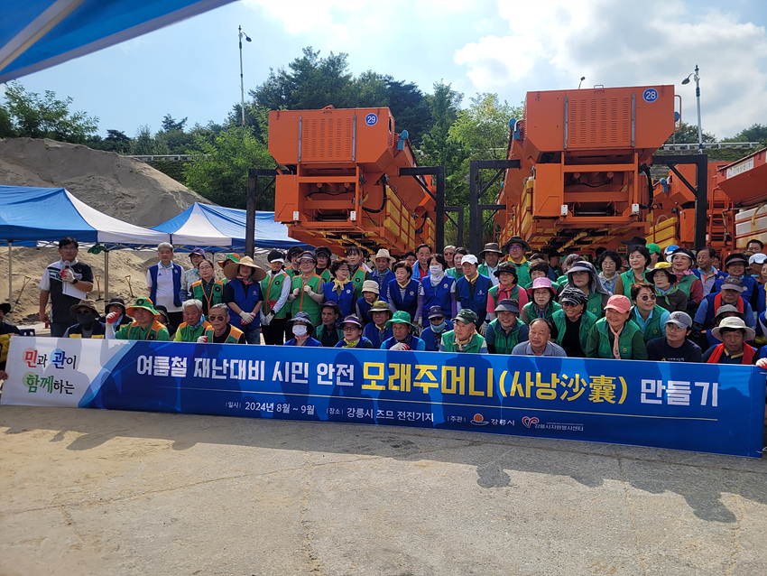 (강원=NSP통신) 조이호 기자 = 강원 강릉시(시장 김홍규)와 강릉자원봉사센터(이사장 최길영)가 10일 즈므 전진기지에서 지역의 자생단체를 비롯한 시민 및 공무원들과 함께 ‘여름철 재난대비 시민안전 모래주머니 만들기’ 활동을 실시했다.