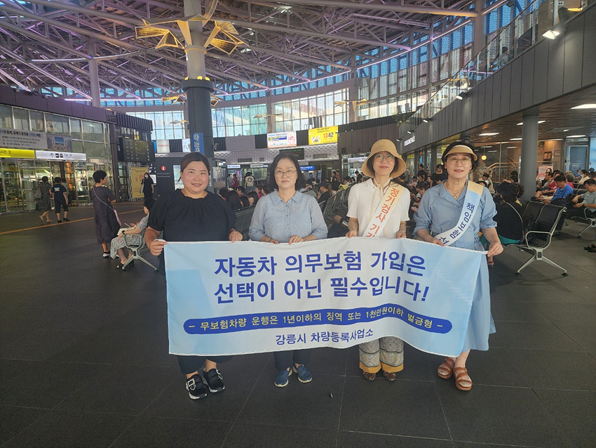 (강원=NSP통신) 조이호 기자 = 강원 강릉시(시장 김홍규) 차량등록사업소가 휴가 절정기를 맞이해 모두의 안전을 지키고 대형사고를 예방할 수 있는 최소한의 안전장치인 자동차 의무보험 가입의 중요성을 알리기 위해 홍보에 나섰다.