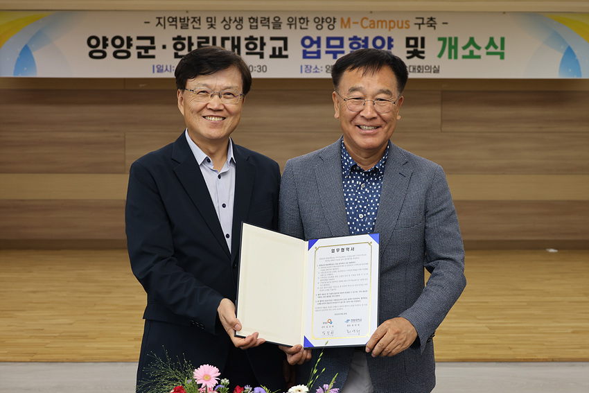 김진하 군수는 “한림대학교의 지식과 연구 역량이 양양군의 산업과 조화를 이루어, 우리 지역에 긍정적인 변화를 가져오길 바란다”며 “긴밀한 협력으로 동반 성장과 함께 지역경제 활성화와 일자리 창출로 이어지기를 바란다”고 말했다.