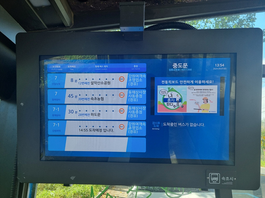(강원=NSP통신) 조이호 기자 = 강원 속초시(시장 이병선)가 버스정보안내기를 3개소에 추가 설치하고 기존 안내기 중 노후화된 5개소에 대한 교체를 완료했다.