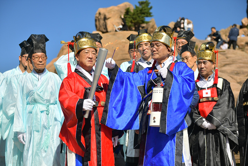 (강원=NSP통신) 조이호 기자 = 강원 속초시(시장 이병선)가 2일 설악산 권금성 일원에서 제59회 설악문화제의 시작을 하늘에 고하는 제례를 지내고 성화를 채화했다.