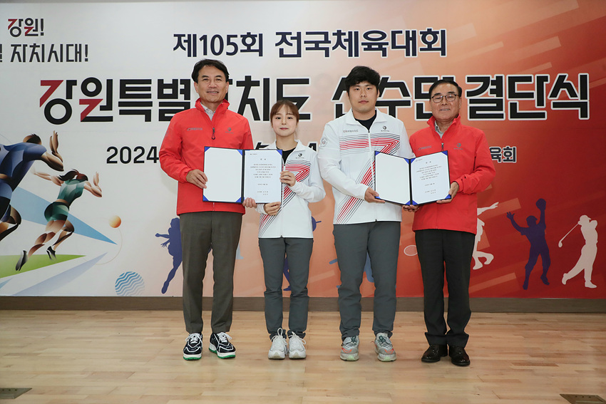 (강원=NSP통신) 조이호 기자 = 강원특별자치도(도지사 김진태)가 2일 강원체육회관에서 ‘제105회 전국체육대회 도 선수단 결단식’을 개최해 강원선수단의 선전 기원을 위한 결의를 다졌다.