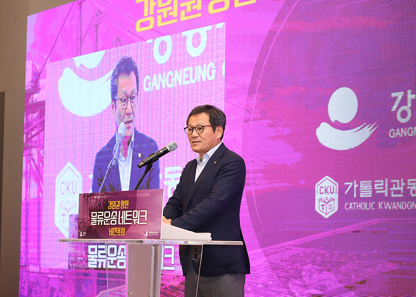 21일 씨마크호텔에서 ‘강원권 항만 물류운송 네트워크 비전포럼’을 가톨릭관동대학교와 공동 주최해 김홍규 시장, 김용승 가톨릭관동대 총장, 박승기 한국수상교통시설협회장, 이재영 동해지방해양수산청장을 비롯한 주요 연구기관 및 기업 관계자들이 참석했다.