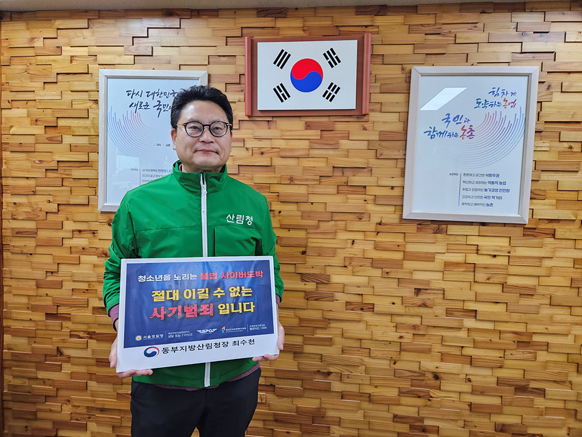 (강원=NSP통신) 조이호 기자 = 최수천 동부지방산림청장이 22일 김도형 강원영동병무지청장에게 지목받아 ‘청소년 도박 근절 릴레이 챌린지’에 동참했다.