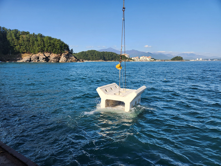 군은 지난 25일 손양면 수산리 연안 해역에 인공어초 15기를 설치 했다. 문어 서식 산란장 조성사업은 문어의 안정적 산란과 서식을 위해 수중에 인공어초 구조물을 설치하는 사업이다.