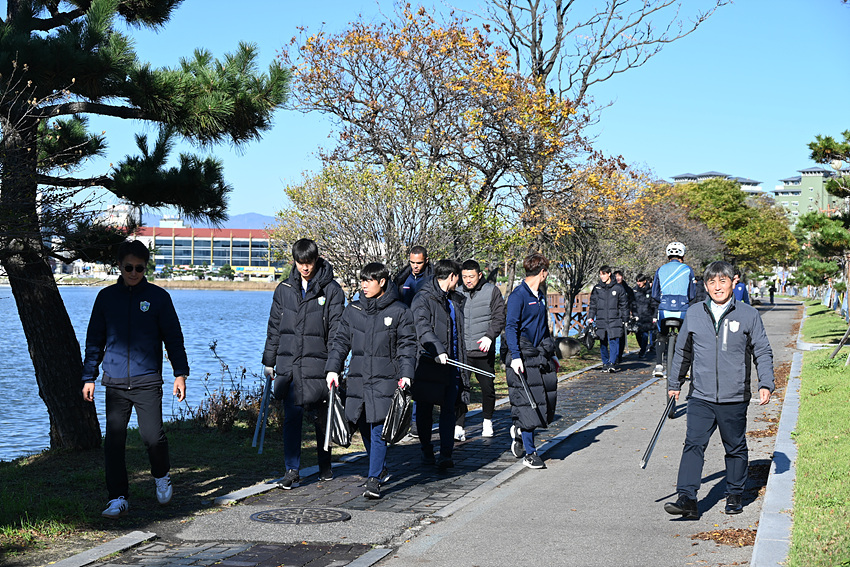 축구단은 경포 해수욕장과 경포호수 일원을 돌며 환경정화 활동과 함께 걷기운동을 하는 시민들에게도 고마운 인사를 나누며 강릉시민과 함께한다는 마음을 표현했다.