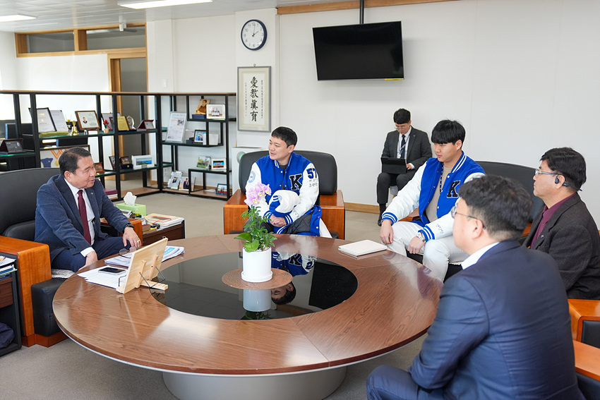 김우석 회장과 정지민 부회장을 비롯한 강원대 총학생회 회장단은 신경호 교육감에게 최근 있었던 사고 소식을 언급하며 쾌유를 기원했고, 신경호 교육감은 사고 이후의 건강 상태와 앞으로의 강원교육에 대한 의지를 전했다.