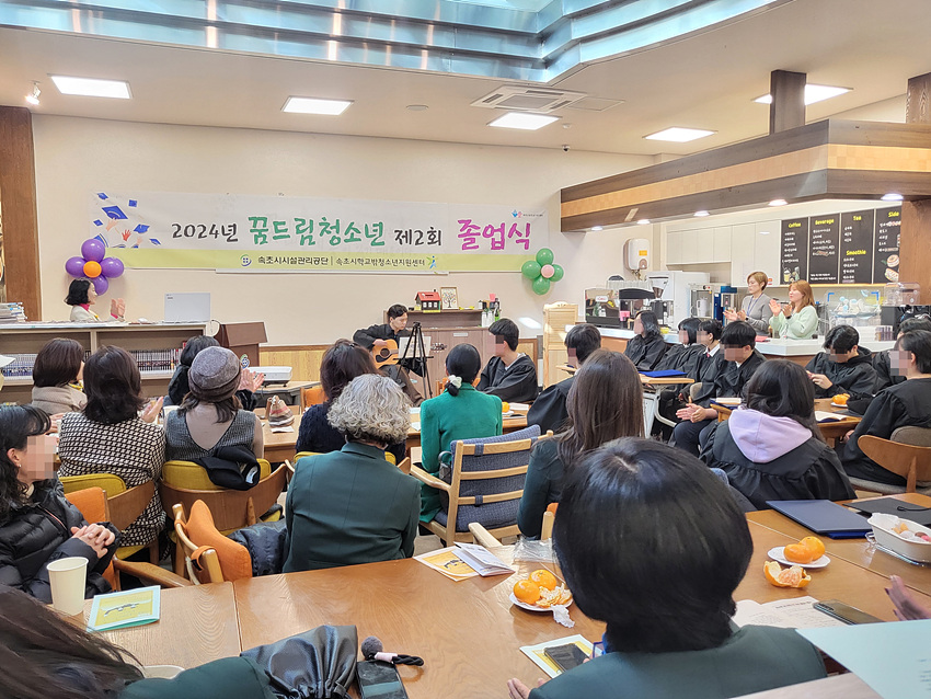 (강원=NSP통신) 조이호 기자 = 강원 속초시(시장 이병선) 속초시시설관리공단(이사장 김태균)이 운영하는 학교밖청소년지원센터가 지난 6일 수련관 1층 청소년카페 풀이음친구랑에서 ‘2024년 꿈드림 졸업식’을 개최했다.