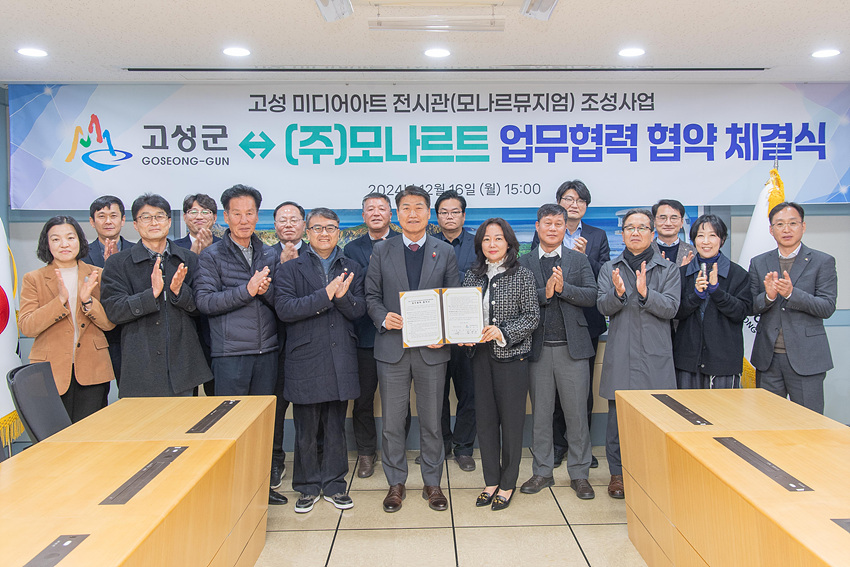 (강원=NSP통신) 조이호 기자 = 강원 고성군(군수 함명준)이 ‘고성 미디어아트 전시관(모나르 뮤지엄)’ 조성사업을 본격적으로 추진하기 위해 16일 군청 본관 2층 회의실에서 모나르트(대표 정해인)와 업무협약을 체결했다.