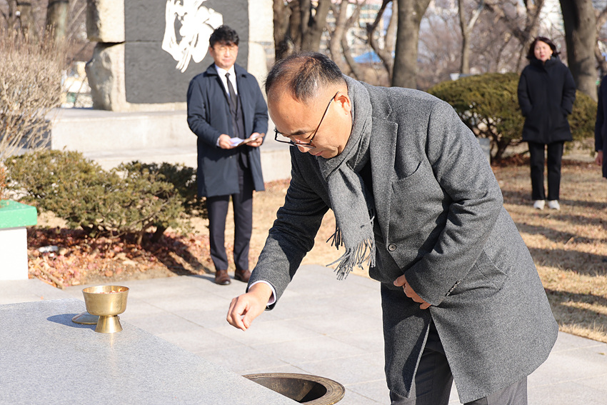 도의 인사에 따라 부이사관으로 승진한 탁동수 부군수는 1월 1일 충혼탑을 참배하며 부군수로서의 첫걸음을 내디뎠다.