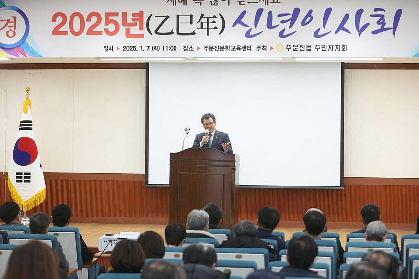 (강원=NSP통신) 조이호 기자 = 강원 강릉시(시장 김홍규) 주문진읍 주민자치회(회장 함군호)가 7일 김홍규 시장, 주문진읍장, 관내 유관기관 및 자생단체 회원, 주민 등 300여 명이 참석한 가운데 ‘2025년 주문진읍 신년인사회’를 개최했다.