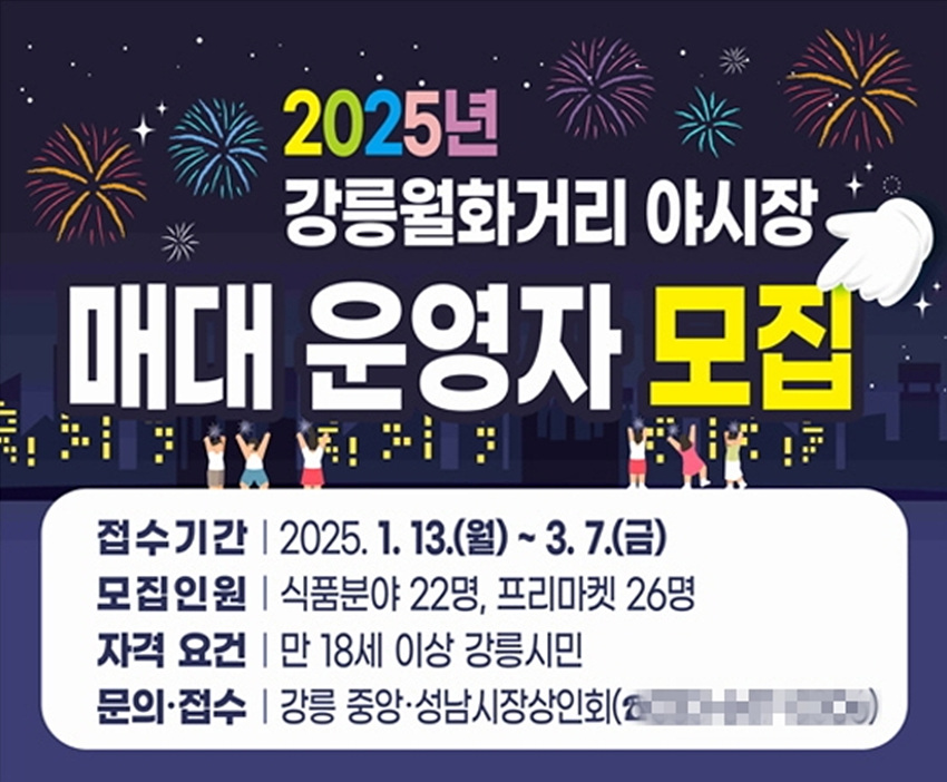 (강원=NSP통신) 조이호 기자 = 강원 강릉시(시장 김홍규)가 월화거리야시장 신규 매대 운영자를 13일부터 공개 모집한다.