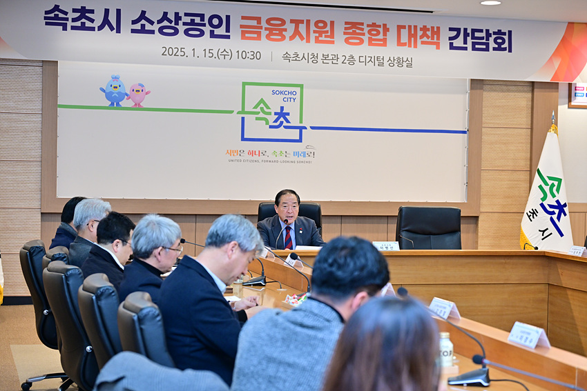 (강원=NSP통신) 조이호 기자 = 강원 속초시(시장 이병선)가 15일 시청 디지털상황실에서 ‘소상공인 금융지원 종합 대책 간담회’를 개최하고 민생현안 극복 방안을 논의했다.