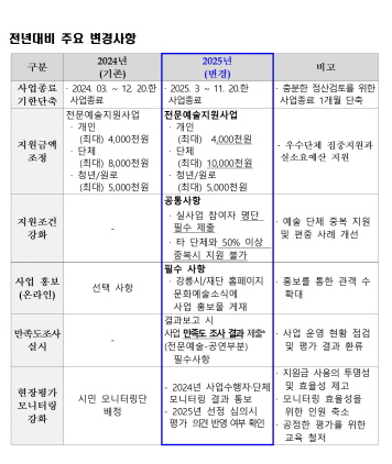 특히 올해는 전문예술지원사업 분야에서 우수단체 집중지원을 위해 단체별 최대 지원금액을 1000만원으로 증액했다.