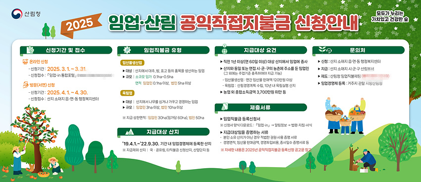 (강원=NSP통신) 조이호 기자 = 강원 양양군(부군수 탁동수)이 3월 1일부터 4월 30일까지 2025년도 임업·산림 공익직접지불금 신청을 받는다.