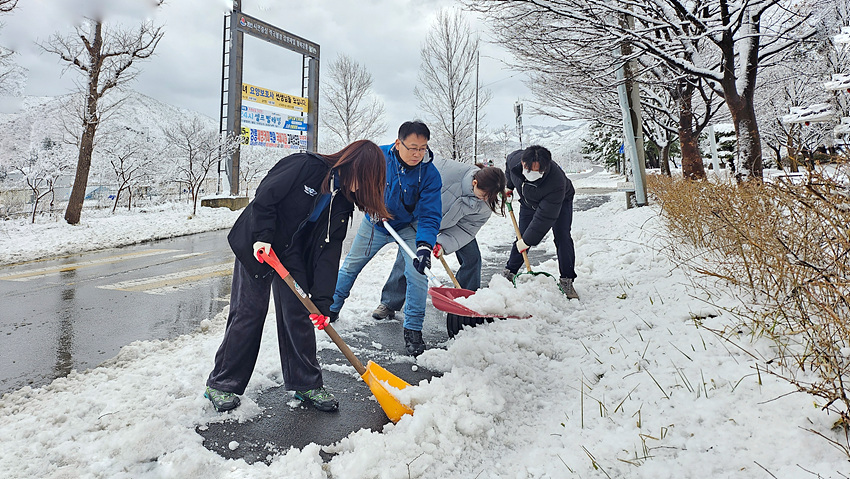 3일 오전 1시를 기점으로 대설경보가 발령됨에 따라 시 재난안전대책본부 비상2단계로 격상 운영하고 오전 9시부터 시청 직원 1700여 명이 투입돼 읍면동 버스정류장, 인도 및 관광시설을 중심으로 제설작업을 진행했다.