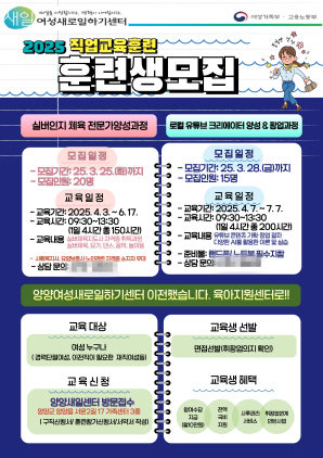 양양군, 양양여성새로일하기센터 직업교육훈련생 모집