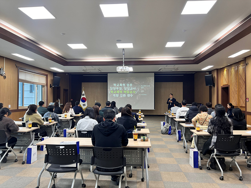 연수는 ‘학교폭력예방 및 대책에 관한 법률’ 일부개정에 따라 변화하는 제도를 안내하기 위해 실시됐으며 ▲학교 현장에서 적용되는 학교폭력 관련 법령·지침 ▲학교폭력제로 센터 운영 ▲학교폭력 사안 처리 절차의 이해 등 관련 업무 역량 신장에 중점을 두었다.