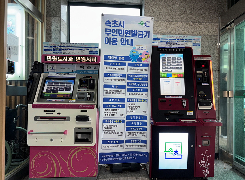 (강원=NSP통신) 조이호 기자 = 강원 속초시(시장 이병선)가 오는 11일부터 관내 무인민원발급기를 통한 민원서류 발급 수수료를 전면 무료화한다.