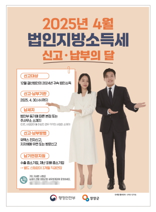 (강원=NSP통신) 조이호 기자 = 강원 양양군(부군수 탁동수)이 오는 30일까지 2025년 법인지방소득세 확정 신고·납부를 받는다.