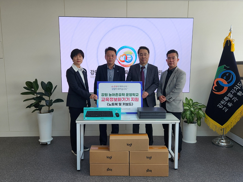 (강원=NSP통신) 조이호 기자 = 강원특별자치도교육청(교육감 신경호) 교육과학정보원(원장 이한준)은 15일 교육과학정보원에서 영월 무릉초등학교의 농어촌유학 지원을 위해 노트북 10대 등을 지원하는 ‘농어촌유학 노트북 나눔식’을 개최했다.