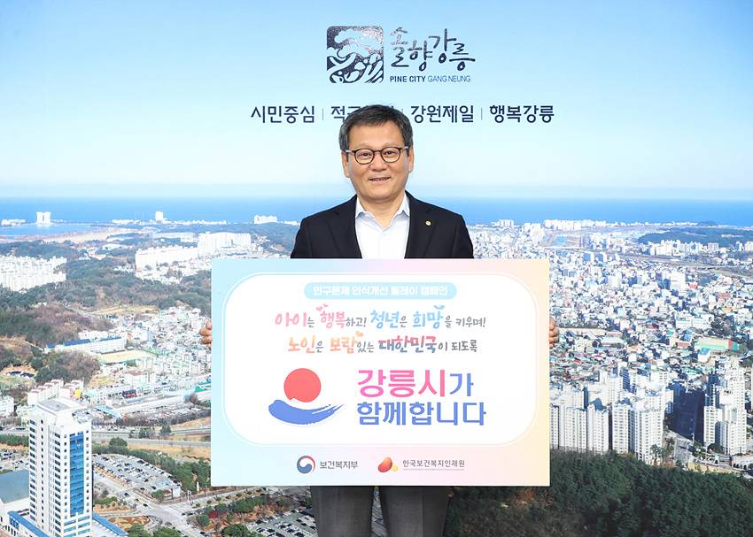 (강원=NSP통신) 조이호 기자 = 김홍규 강릉시장은 17일 저출생과 고령화에 따른 인구감소 문제에 대한 사회적 공감대 형성과 인식개선을 위해 ‘인구문제 인식개선 릴레이 캠페인’에 동참했다.