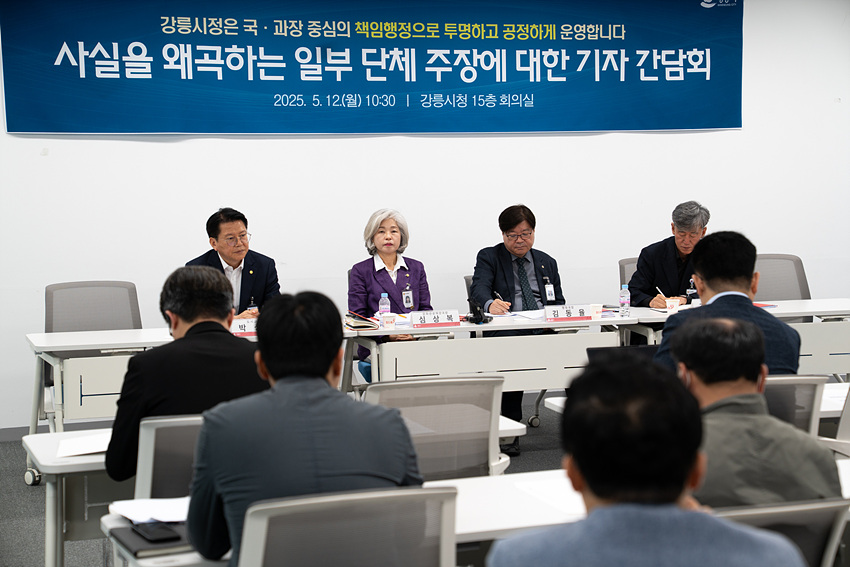 (강원=NSP통신) 조이호 기자 = 강원 강릉시(시장 김홍규)가 12일 15층 회의실에서 1900여 공직자가 책임을 갖고 하나 돼 부서장 중심의 투명하고 공정한 행정을 운영하고 있음을 강조하고 사실을 왜곡 하고 있는 일부 단체의 주장에 대해 적극 해명하고 나섰다.