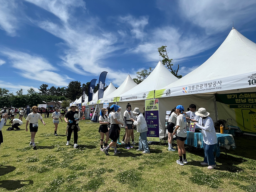 (강원=NSP통신) 조이호 기자 = 강원 강릉시(시장 김홍규) 강릉관광개발공사(사장 강희문)가 지난 16일부터 18일까지 3일간 강릉 경포호수광장과 인근 탐방로 일원에서 열린 ‘2025 TNF100(The North Face 100) 강원’ 대회와 연계해 운영한 ‘러너들에게 행운을’ 이색 체험부스 운영이 성황리에 마무리됐다.