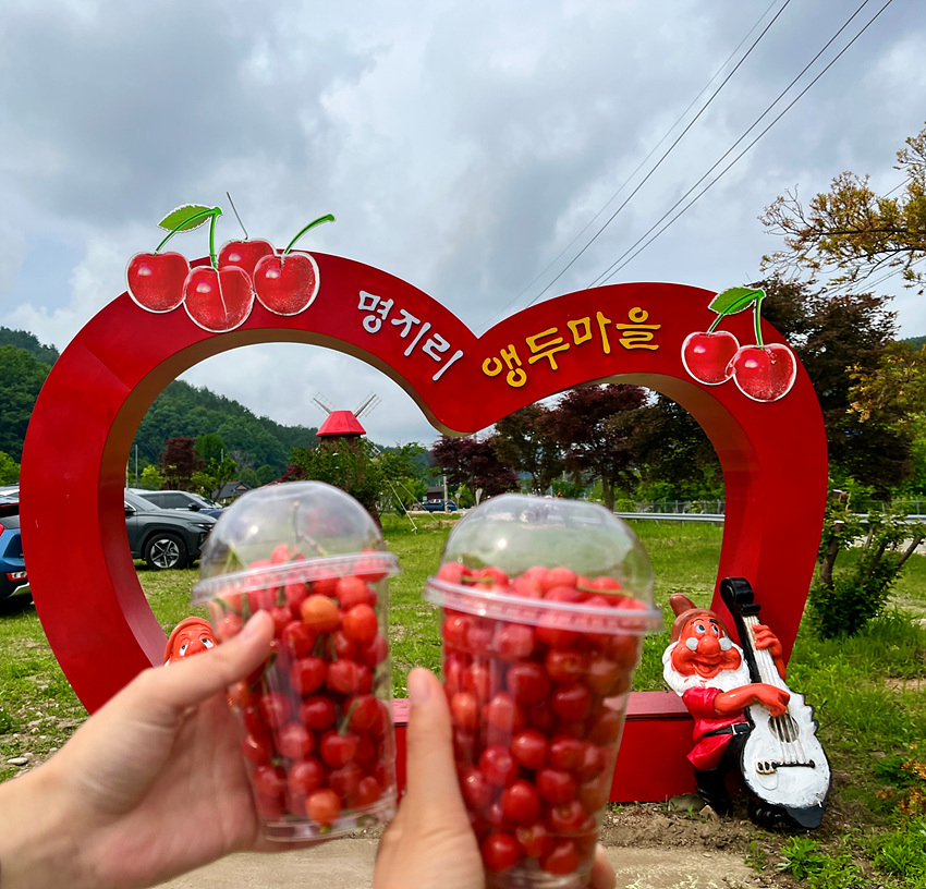 명지리 앵두마을은 마을길을 따라 집집마다 앵두나무가 줄지어 서 있는 독특한 풍경을 자랑하는 곳으로 이곳 주민들은 매년 도시민과 지역주민이 함께 어우러지는 축제를 마련해 청정 자연과 소박한 농촌의 정취를 널리 알리고 있다.