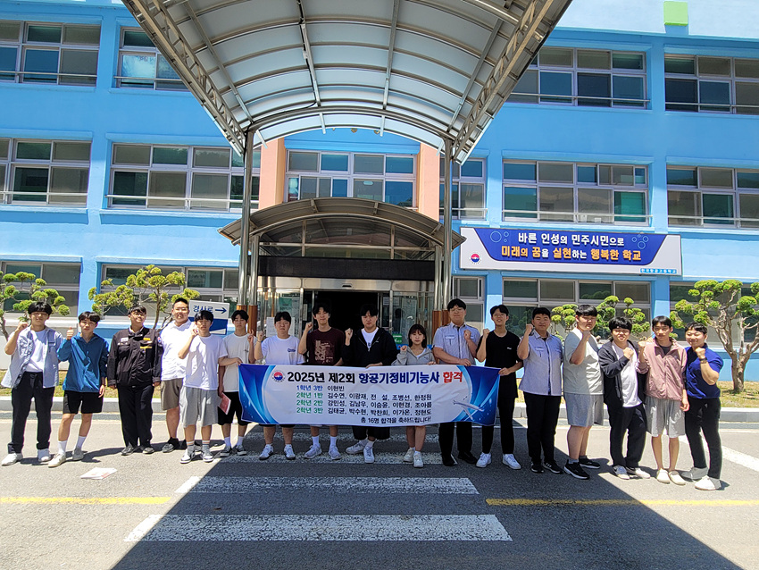 ‘항공기정비기능사’는 한국산업인력공단 주관으로 실시됐으며 이번 시험에는 한국항공고 1~2학년들이 응시해 2학년 15명과 1학년 1명 등 총 16명이 최종 합격(25. 6. 27.자 기준)했다.