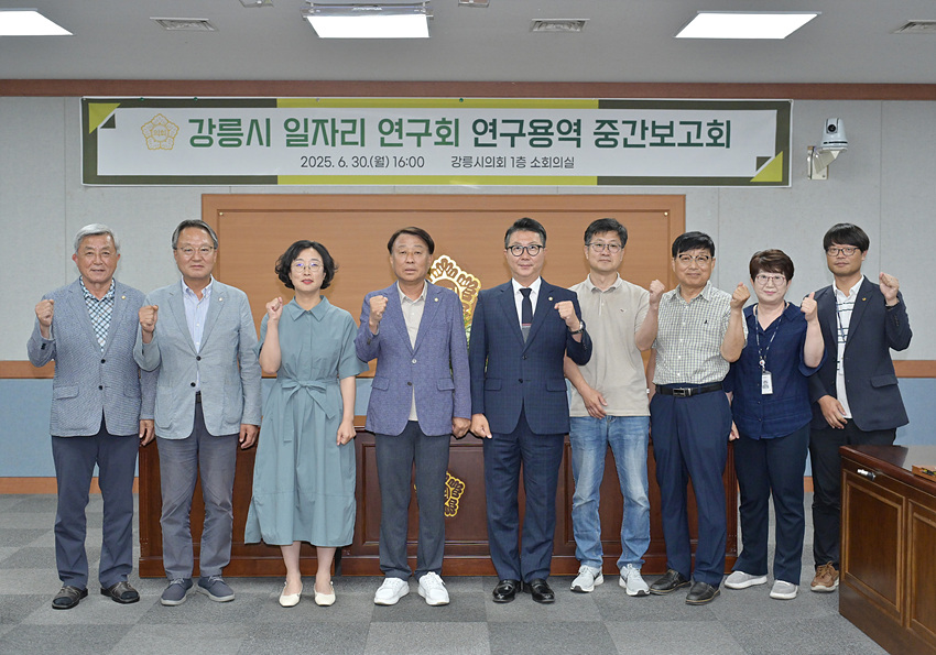 (강원=NSP통신) 조이호 기자 = 강원 강릉시의회 의원연구회 ‘강릉시 일자리 연구회’가 지난달 30일 시의회 1층 소회의실에서 강릉시 일자리 연구를 위한 연구용역의 중간보고회를 개최했다.