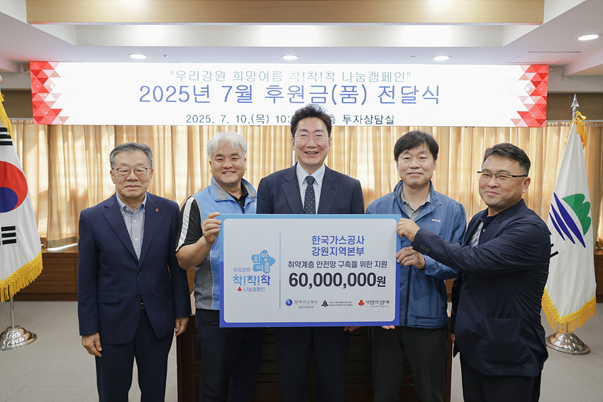 한편 시는 지난달 1일부터 오는 15일까지 45일간 ‘돌봄, 안전, 교육’이라는 3가지 키워드를 중심으로 ‘우리강원 희망여름 착!착!착! 나눔캠페인’이 진행되고 있다. 모인 성금은 기후 위기 시대, 폭염 취약계층을 위한 에너지 지원사업에 사용된다.