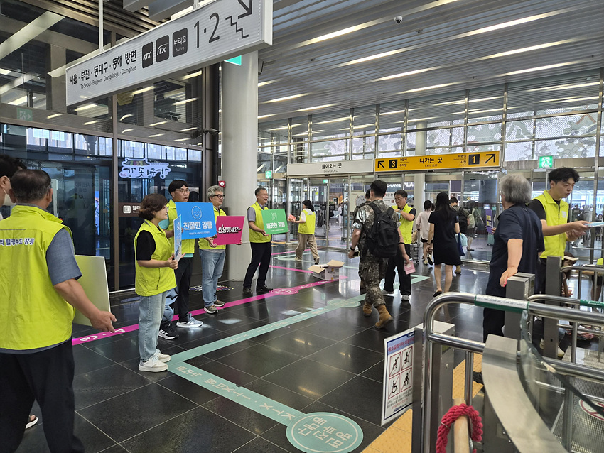 (강원=NSP통신) 조이호 기자 = 강원 강릉시(시장 김홍규) 국제관광도시 시민실천운동 추진위원회 친절분과(위원장 김남석) 소속 30여 명은 지난 2일 강릉역에서 전국 제일의 친절한 도시 강릉 조성을 위해 관광객 환영 캠페인을 추진했다.