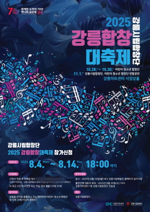 (강원=NSP통신) 조이호 기자 = 강원 강릉시(시장 김홍규)가 오는 10월 28일부터 11월 1일까지 강릉아트센터 사임당홀에서 음악으로 하나되는 화합의 장 ‘2025 강릉합창대축제’를 개최한다.