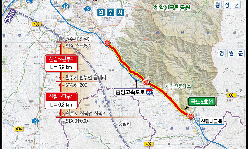(강원=NSP통신) 조이호 기자 = 강원 원주시(시장 원강수) 주요 현안 사업인 ‘국도5호선 신림-판부 도로건설공사’의 전체 구간 4차로 건설계획이 기획재정부에서 최종 확정됐다.