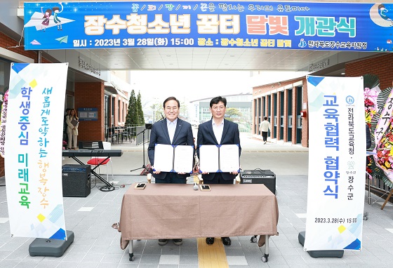 이날 교육협력 협약식은 장수군청이 부지를 제공하고 전북교육청이 시설비를 투자해 건립한 청소년 꿈터 ‘달빛’ 개관식 현장에서 열려 그 의미가 컸다.