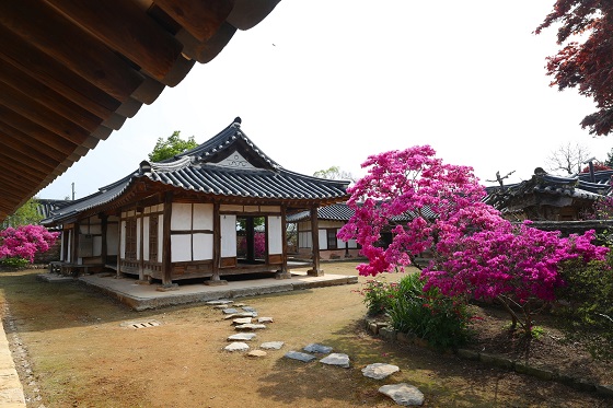 영산홍과 금낭화, 동백꽃, 자목련 등 갖은 봄꽃이 겨울에서 깨어나 은은한 향기로 아흔아홉 칸(현재는 여든여덟 칸)의 고택을 가득 채우고 있다.