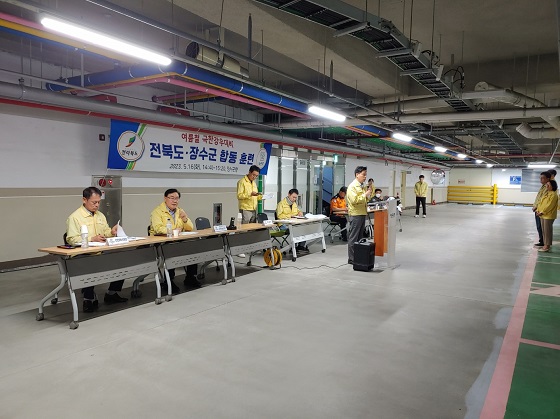 (전북=NSP통신) 김광석 기자 = 전북 장수군은 16일 장수군청 지하주차장에서 여름철 기상이변으로 인한 극한강우 대비 현장 합동훈련을 실시했다.