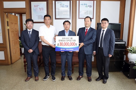 (전북=NSP통신) 김광석 기자 = 귀뚜라미 그룹(회장 최진민)이 25일 전북 정읍시 발전을 위해 관내 고등학생 및 대학생에게 장학금으로 3000만원을 전달했다.