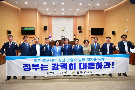 완주군의회는 일본 정부의 후쿠시마 원전 오염수 해양 방류 결정을 다시 한 번 엄중 규탄하고, 원전 오염수 방류 저지를 위한 국제사회와의 공조와 정부차원의 강력 대응을 촉구하며 다음과 같이 결의 했다.