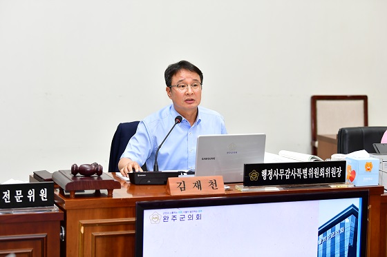 NSP통신-14일 김재천 완주군의회 행정사무감사 특별위원회 위원장이 자원순환과 행정사무감사를 시작으로 4일차를 일정을 진행했다. (사진 = 완주군의회)
