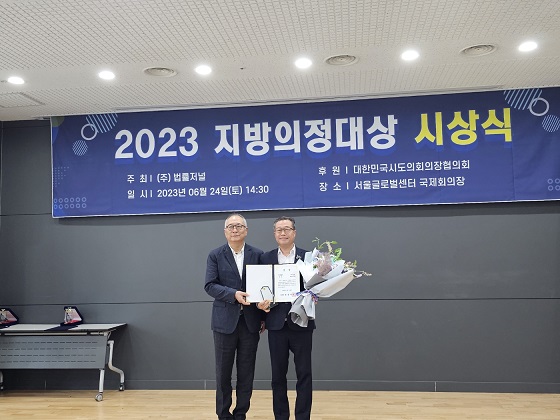 (전북=NSP통신) 김광석 기자 = 전북 군산시의회 한경봉 의원(더불어민주당, 나운1·2동)이 지난 24일 서울글로벌센터 국제회의장에서 열린 2023 지방의정대상 시상식에서 입법활동 부문 중 기초의회 대상을 수상했다.