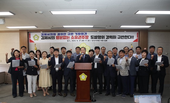 (전북=NSP통신) 김광석 기자 = 전북 군산시의회(의장 김영일)는 27일 11층 소회의실에서 기자회견을 갖고 '새만금특별지방자치단체 추진 관련 김제시의회 결의안'을 규탄했다.